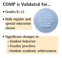 COMP is a systematic, research-based, research-proven approach to effective classroom management that increases academic achievement and reduces discipline problems and office referrals. This federally validated program is a proactive approach that guides teachers in creating effective learning environments for all students K-12 by